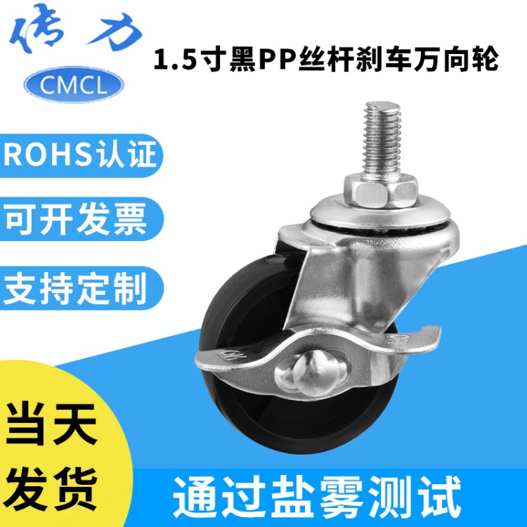 CMCL牌的杂志收纳架滑轮1.5寸黑pp万向刹车滚轮M8螺杆输液架轮子直径4厘米产品:估价:1.35,规格:1.5寸黑ppM8x15丝刹,产品系列编号:1.5寸黑ppM8x15丝刹 发布日期:2025-10-31