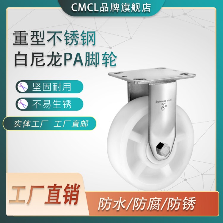 CMCL牌的传力重型不锈钢304尼龙防水防锈防腐蚀食品水产专用万向工业脚轮产品:估价:90.00,规格:4寸,产品系列编号:4寸 发布日期:2025-10-31