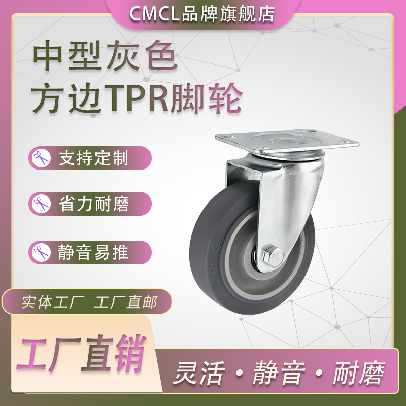 CMCL牌的传力中型灰色TPR脚轮静音超级人造橡胶轮定向工业3\/4\/5\/6寸万向轮产品:估价:4.00,规格:3寸,产品系列编号:3寸 发布日期:2025-5-3