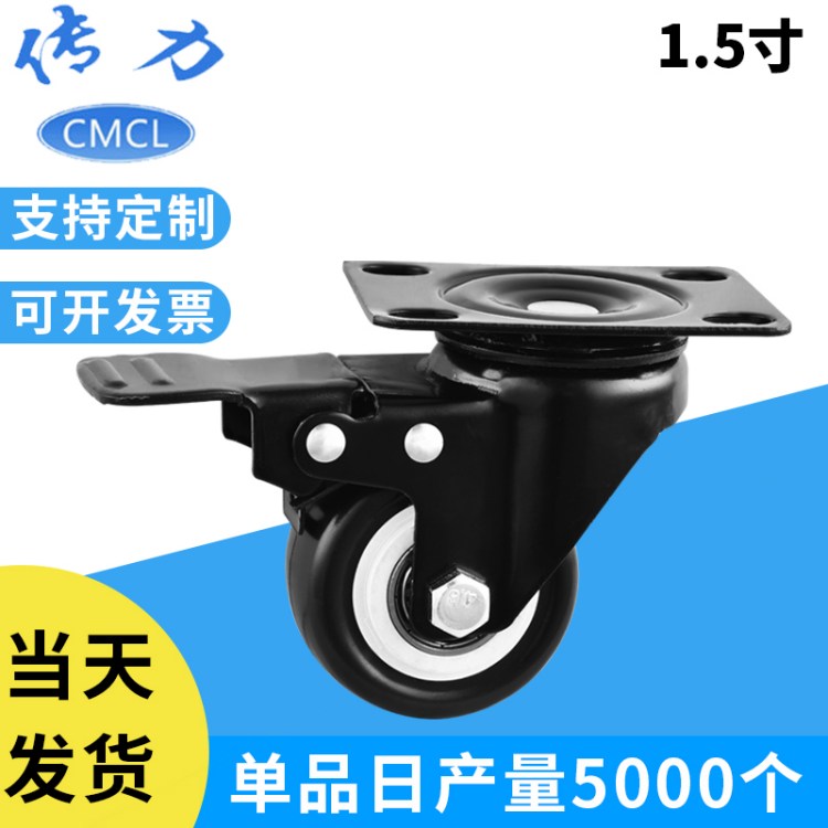 1.5寸金钻脚轮万向刹车滚轮移动设备滑轮带锁五金机电静音小轮子