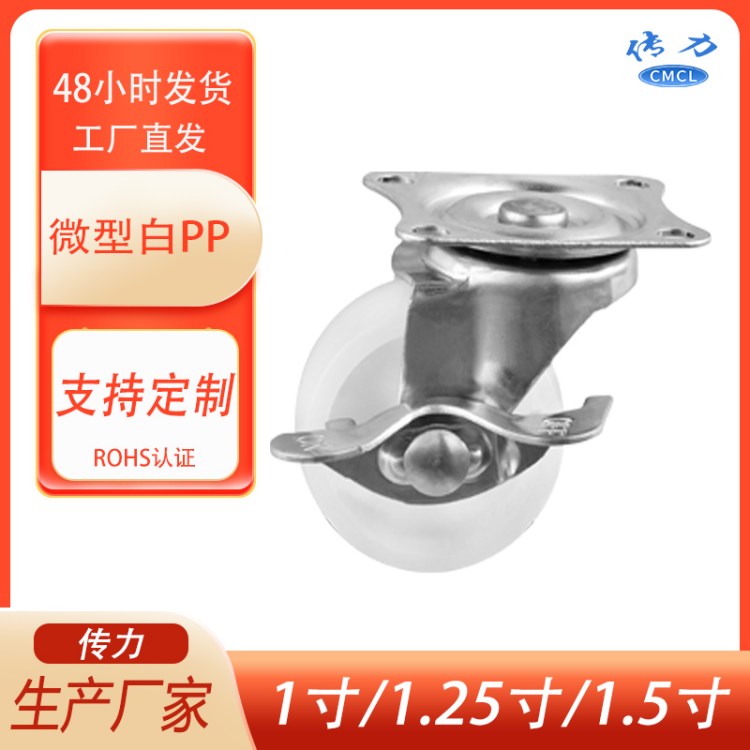 CMCL牌的传力万象角轮家居制品万向轮柜子货架展示置物架轮子微型白PP脚轮产品:估价:0.20,规格:1寸,产品系列编号:1寸 发布日期:2025-10-31