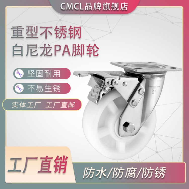 CMCL牌的传力重型304不锈钢尼龙轮防水防生锈万向轮4568寸食品厂专用脚轮产品:估价:90.00,规格:4寸,产品系列编号:4寸 发布日期:2025-10-31