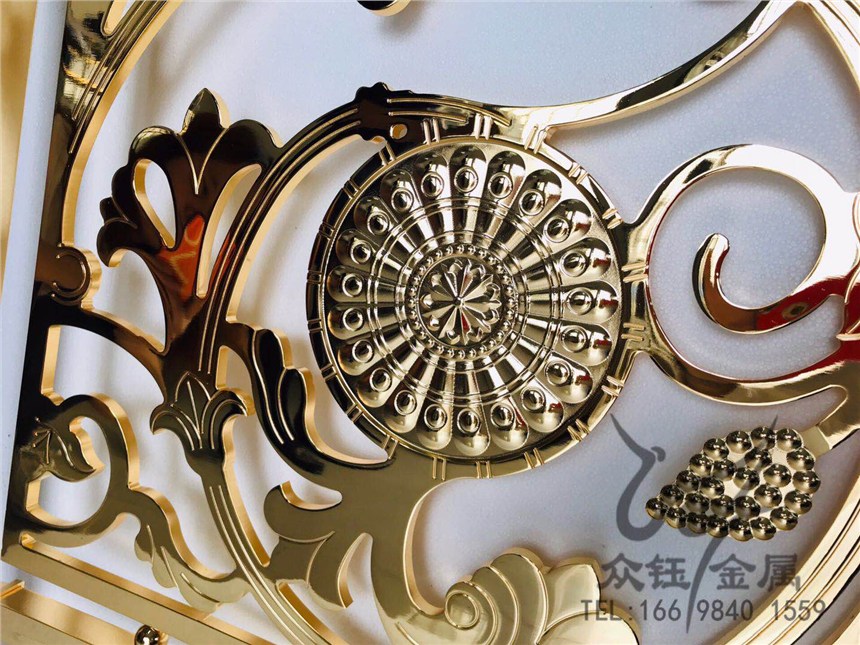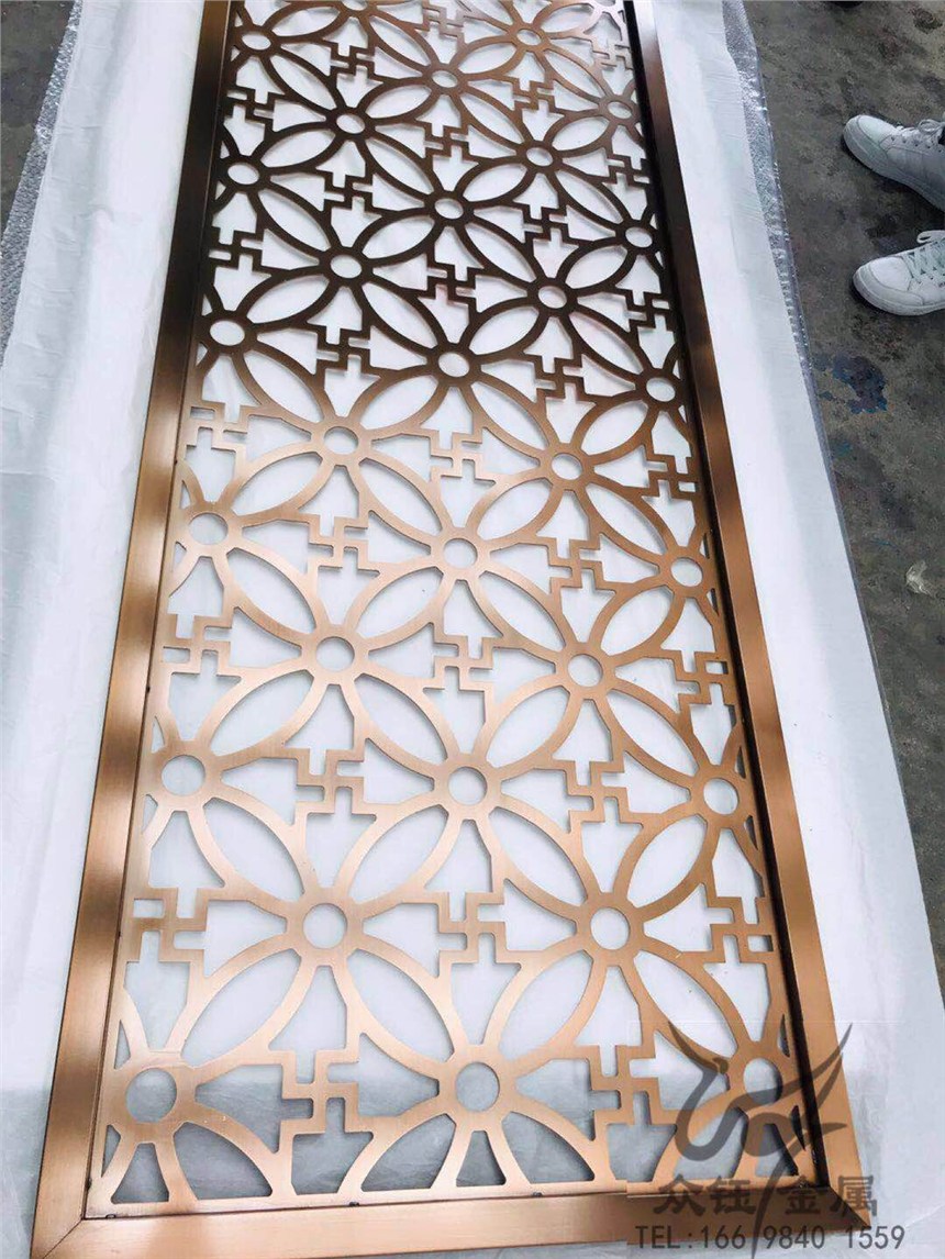 众钰牌的玫瑰金不锈钢满焊屏风 亮光封油表面工艺丰富而洗练的酒店内置让人白看不厌产品:估价:889,规格:不锈钢玫瑰金屏风,产品系列编号:可定制 发布日期:2019-9-4