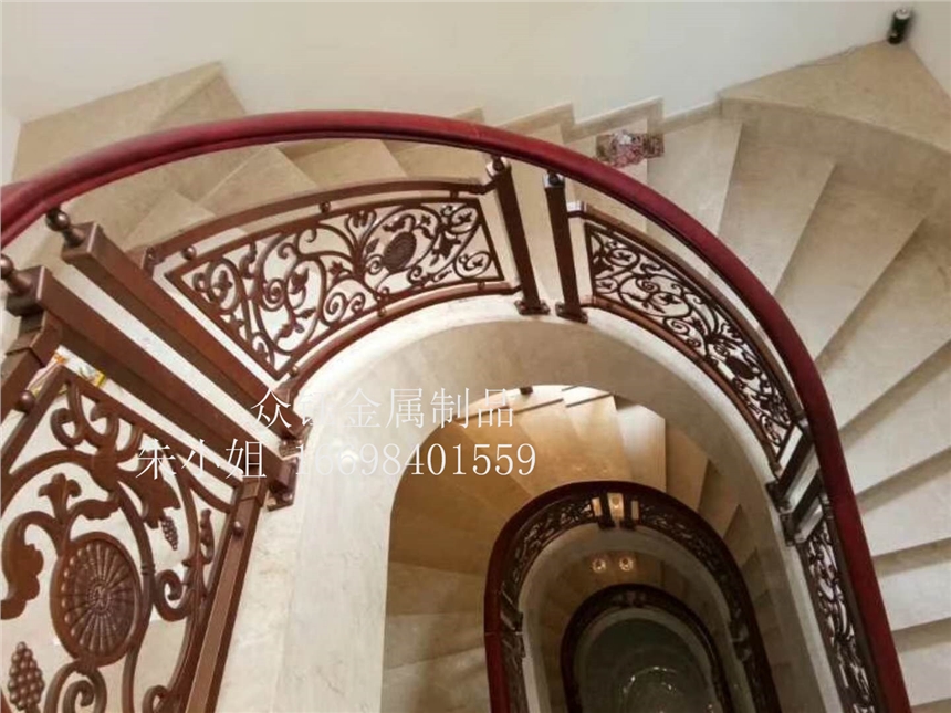 众钰牌的新型艺术楼梯扶手铝艺护栏生活中艺术品产品:估价:2263,规格:立体弧形护栏,产品系列编号:可定制 发布日期:2019-8-31